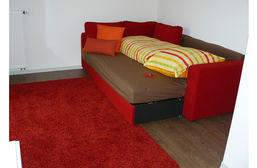 - sehr bequeme ausziehbare Schlafcouch für 2 Personen (vom Komfort her wie ein Doppelbett); der Schlafbereich kann abgetrennt werden